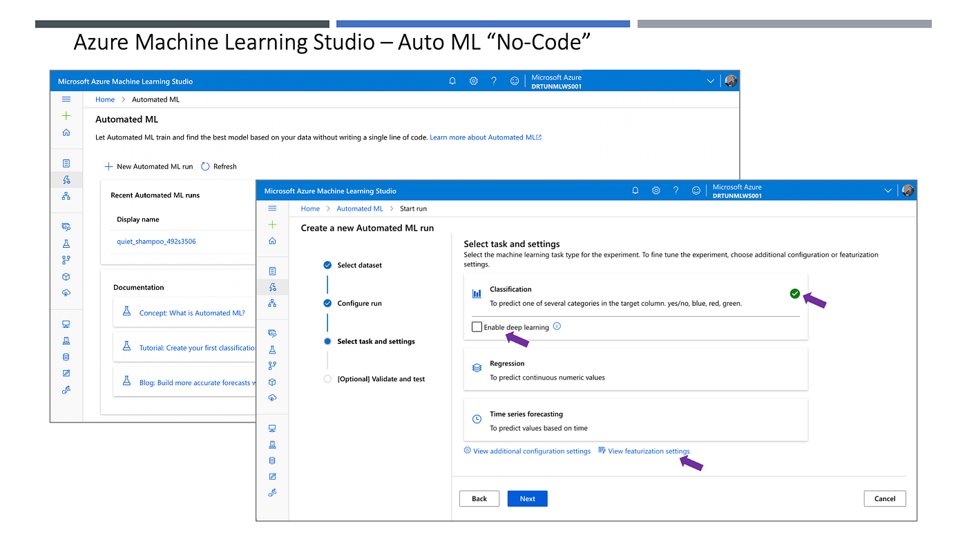 အသုံးပြုမဲ့ Dataset ကိုရွေးချယ်ပြီး၊ ဘယ် Attribute ကို Predict လုပ်မှာလည်း ဆိုတာကို သတ်မှတ်ရွေးပေးပြီ၊ ကန့်သတ်ချက်တစ်ချို့သတ်မှတ်ပေးလိုက်ရုံနဲ့ Machine Learning လုပ်ငန်းစဉ်အားလုံးကို အလိုအလျှောက် လုပ်ပေးသွားနိုင်ပါတယ်။