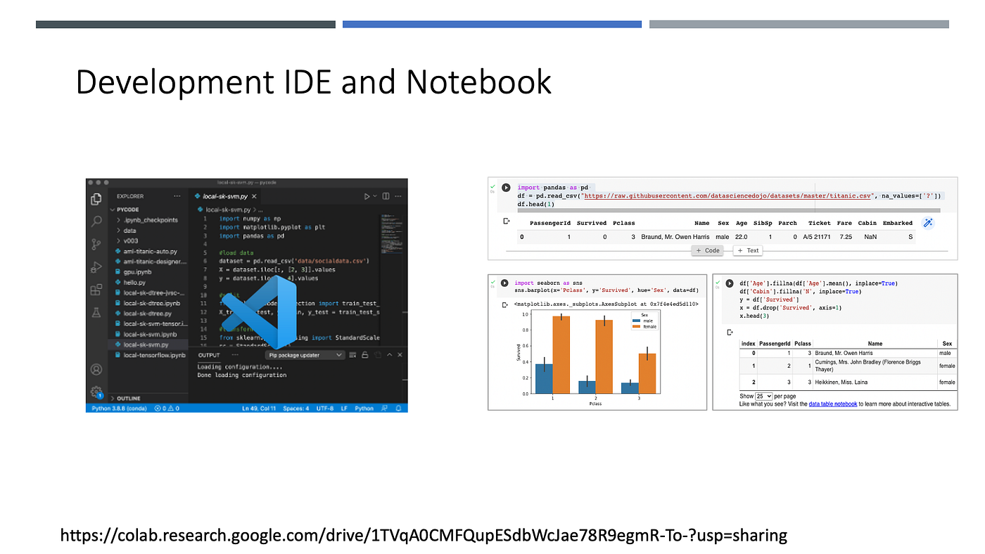 IDE နှင့် Code ရေးခြင်းပုံစံမျိုးမှ Notebook အသုံးပြုခြင်းသည် Data Scince လုပ်ငန်းစဉ်များအတွက် ပိုမိုလွယ်ကူထိရောက်စေပါသည်။
