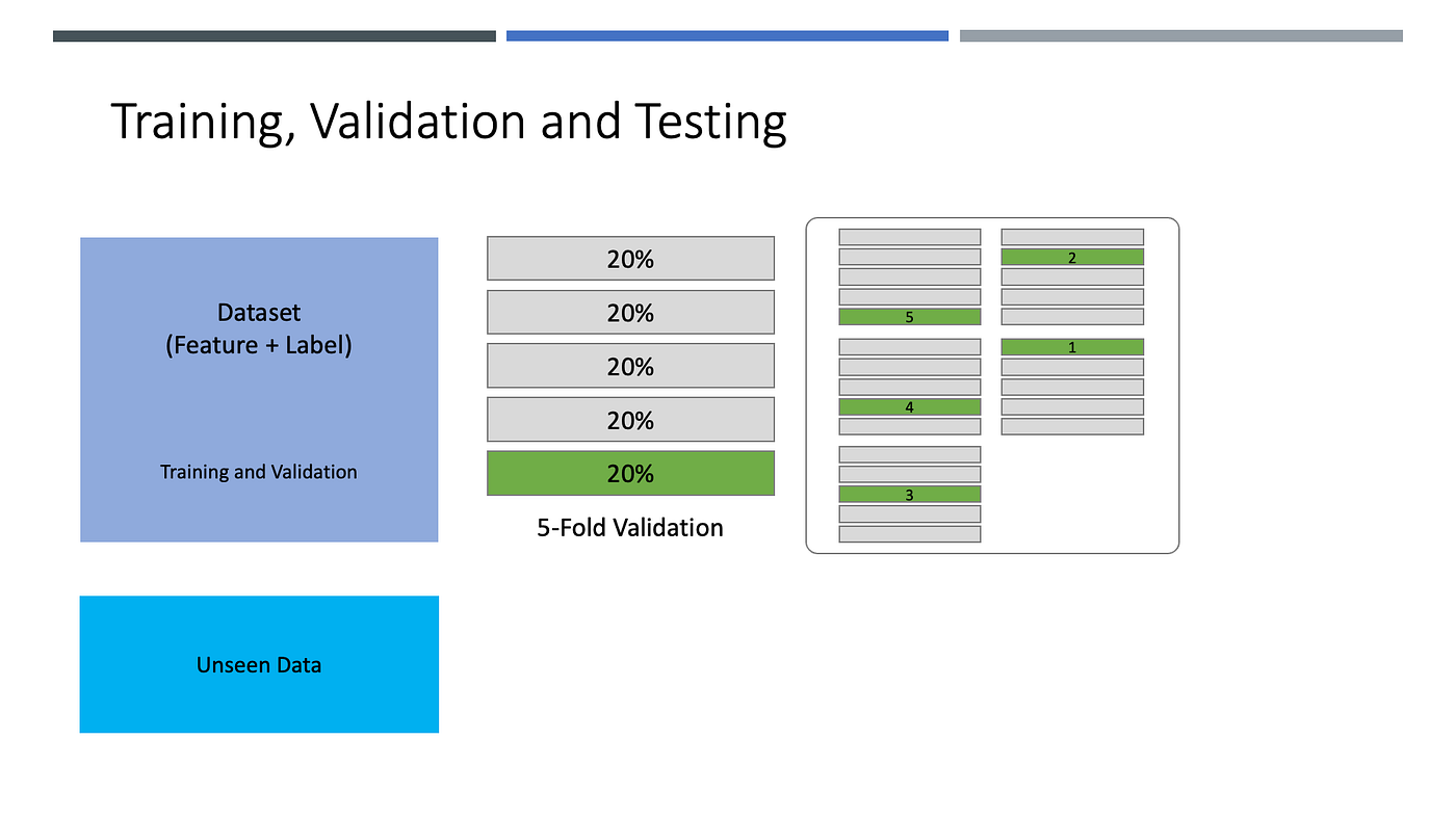 Model ကို Training ပြုလုပ်ပြီးတဲ့အခါမှာ ပြန်လည် Testing, Validation နှင့် Evaluation ပြုလုပ်ရန် လိုအပ်ပါတယ်။ Training ပြုလုပ်မဲ့ Dataset ကို ပိုင်းပြီး Cross Validation ပြုလုပ်လေ့ရှိပါတယ်။