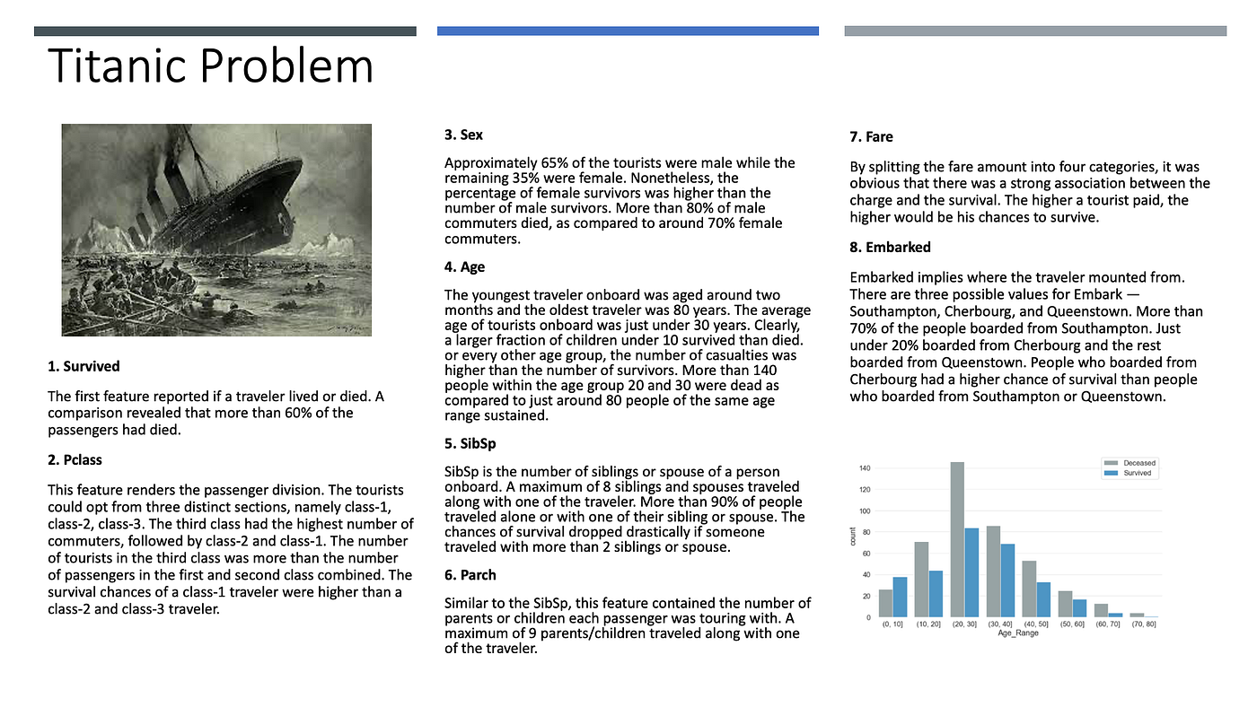 ဥပမာအနေနဲ့ Titanic သင်္ဘောခရီးသည်တွေရဲ့ အချက်အလက်တွေကို ကြည့်ပြီး ခရီးသည်တစ်ယောက်ချင်းစီရဲ့ အသက်ရှင်မရှင် ခန့်မှန်းတဲ့ ပုစ္ဆာတစ်ခုအဖြစ် လေ့လာလို့ရပါတယ်။
